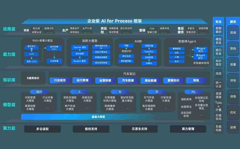 j9国际站备用问学智车解决方案是一套基于AI技术的汽车行业智能化系统,,,,覆盖从底层算力到顶层AI应用的全栈方案。。。方案由算力层、、、模型层和应用层组成:算力层,,方案支持多种一体机配置,,,具备云端灵活部署、、、多云适配以及动态优化计算资源的能力;模型层,,,j9国际站备用问学平台版提供了企业级AI应用一站式构建与管理平台,,,,支持基于后训练强化技术的汽车企业专属模型的训练、、、、评测和运营;应用层,,,j9国际站备用问学DeepSeek版提供包括超级员工、、智能招采、、智能营销、、、、智能客服、、AI for BI等一系列解决方案,,,,可助力汽车行业实现数字化转型,,,让管理更智能、、、、响应更敏捷。。。。
